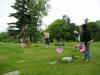 Planting flags for Memorial Day at Hillcrest Cemetary |